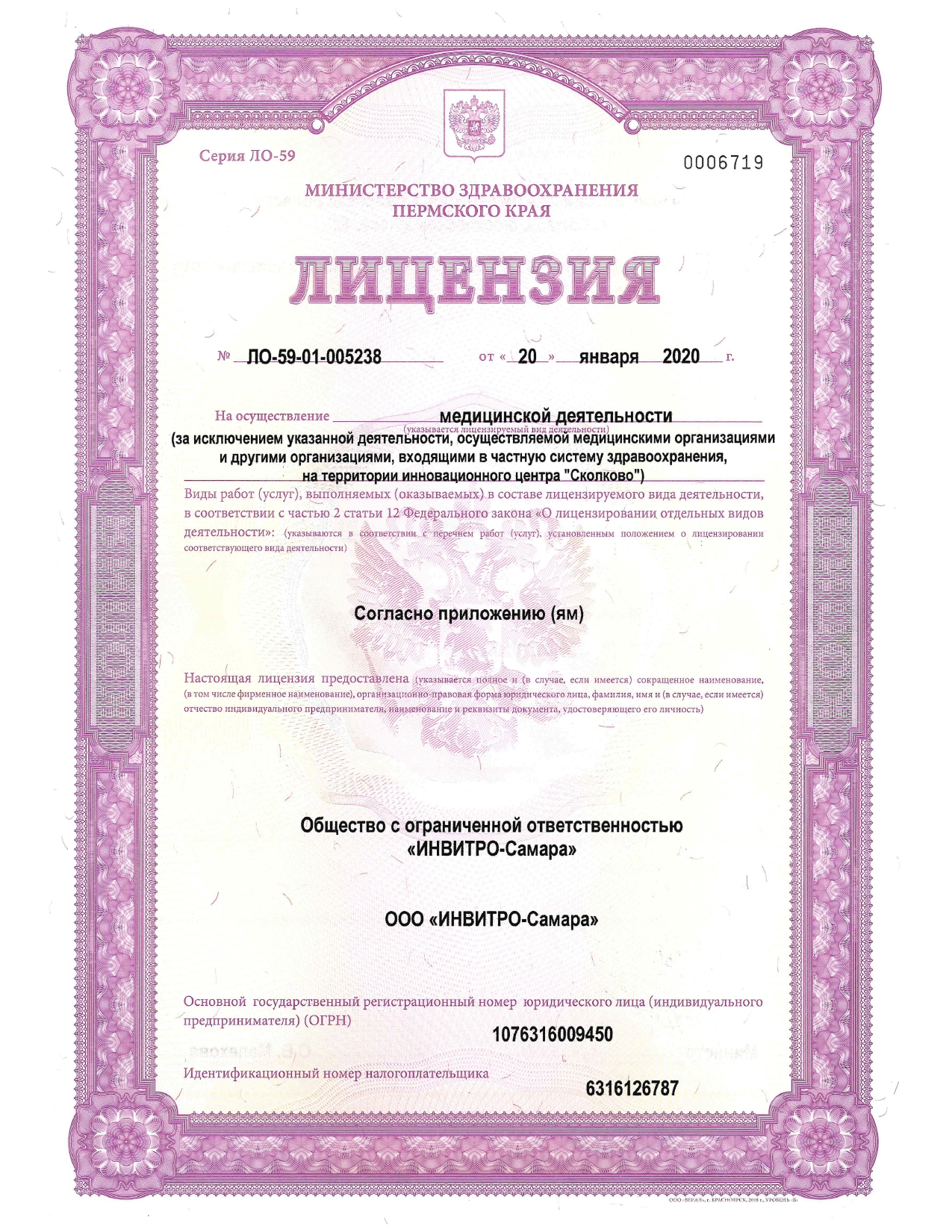 Лицензия на осуществление медицинской деятельности, ЛО-59-01-005238, 20.01.2020